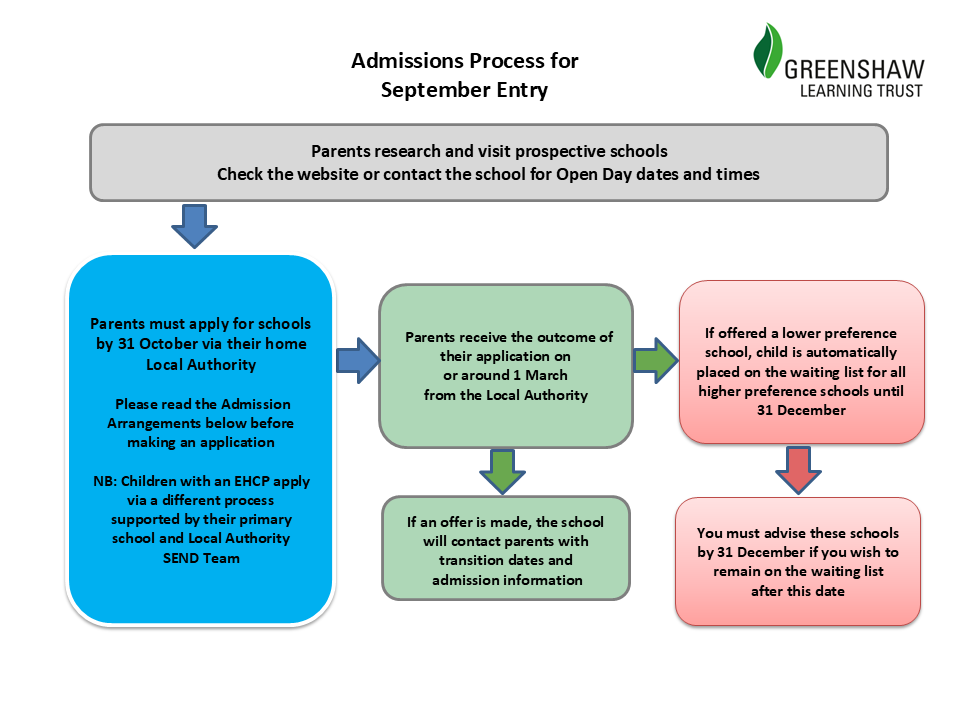 The Greenshaw Learning Trust is the admissions authority for Broadwater School.