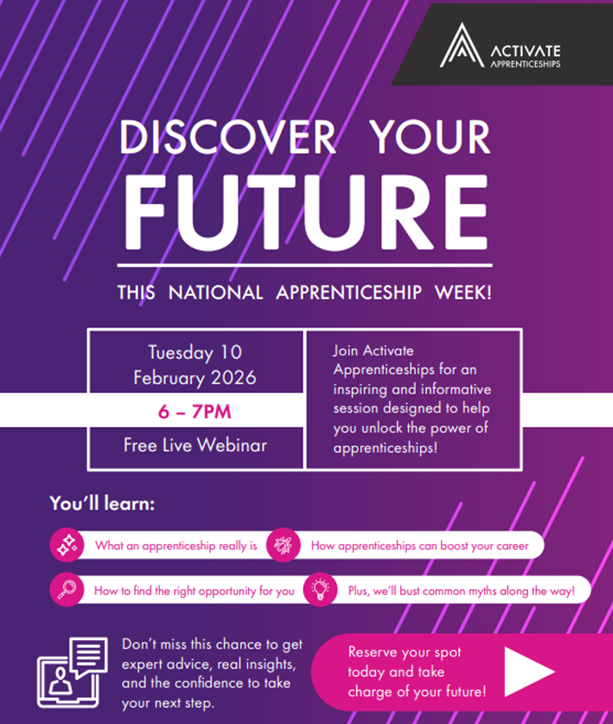 Activate Apprenticeships are hosting a free parent webinar on Tuesday 10 February 2026 6-7pm, click HERE for booking link.